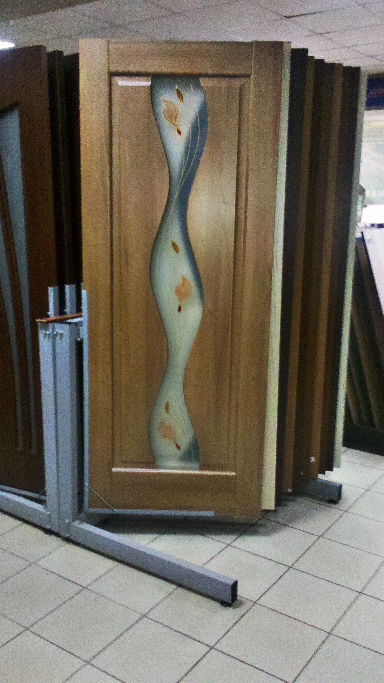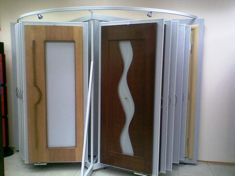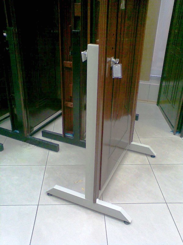Для презентации дверей существует специальные демонстрационные стенды для дверей -экспозиторы. Планшет такого экспозитора представляет собой L-образный профиль, в который устанавливается дверь. Дверь закрепляется в планшете тремя зажимами, что позволяет легко и удобно менять экспозиции, не портя при этом внешний вид двери. Покупатель может подойти и "открыть" дверь, осмотреть ее с обеих сторон. Исключение составляет экспозитор Д2000. В нем двери подвешены на направляющих и выдвигаються вперед. Экспозиторы дверей позволяют представить свой товар наиболее эффектно для покупателя, при этом рационально и экономно используя торговую площадь. Например, экспозитор Д3100 позволяет на 3,5 квадратных метрах выставить двадцать две двери, что дает возможность эффективно использовать площадь торгового зала, тем более, при нынешних ценах на аренду. Есть менее дорогая модель экспозитора – Д1100, которая рекомендована для магазинов с малой торговой площадью хотя двери, при первоначальном взгляде покупателя, видны с торца. Этого недостатка лишен экспозитор Д2200 – на нем двери видны в полном развороте. Для демонстрации металлических дверей разработаны специальные подставки П1 позволяющие устанавливать одну или две двери, которые возможно,при необходимости, открыть.